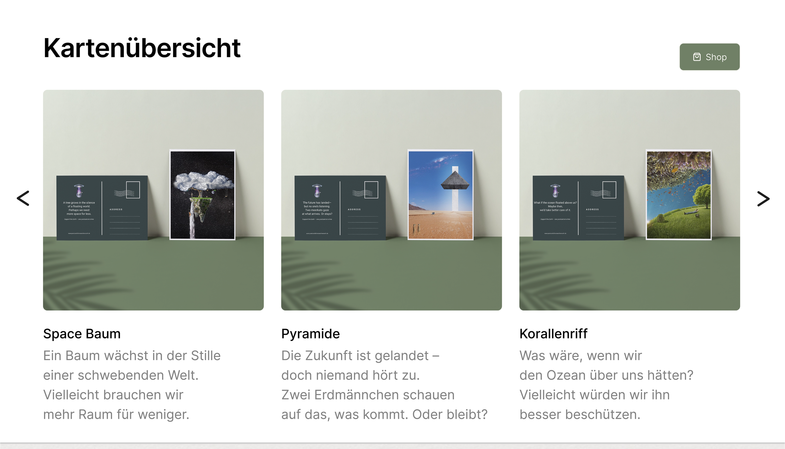 Begleitet von kurzen poetischen Rückseitentexten, entstand eine Serie fiktiver Postkarten, die auf recyceltem Papier gestaltet wurde. Sie soll zum Nachdenken anregen, zum Perspektivwechsel einladen – und visuell auffallen in einer Welt, die von KI-generierten Bildern überflutet ist.